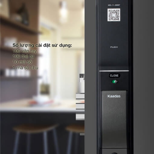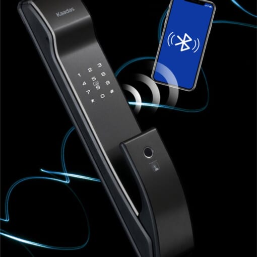 - Kaadas K9 tích hợp nhiều cách mở cửa hiện đại, tiện lợi: mở cửa bằng vân tay, mã số, thẻ từ, chìa cơ và chức năng mở rộng mở khóa bằng Bluetooth.