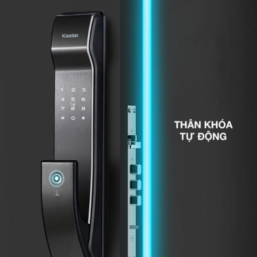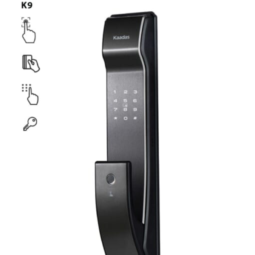 - Kaadas K9 thuộc dòng khóa cửa Kéo – Đẩy hiện đại. Khác với các dòng khóa tay cầm cổ điển khác, tay nắm Push/Pull của Kaadas K9 tích hợp vân tay ngay trên tay cầm giúp người dùng dễ dàng mở cửa dù đang xách nhiều đồ trên tay chỉ với thao tác đơn giản kéo hoặc đẩy.